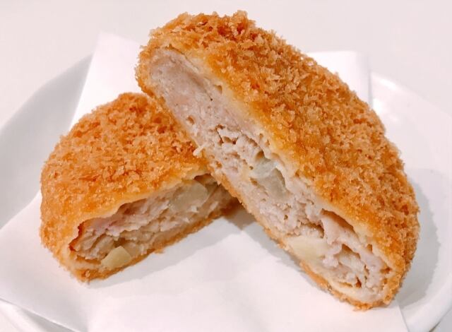 キャベツと玉ねぎの甘みが肉の味を引き立て、サクサクの衣に包まれた中からは、噛むたびに肉汁がじゅわっとあふれ出します。