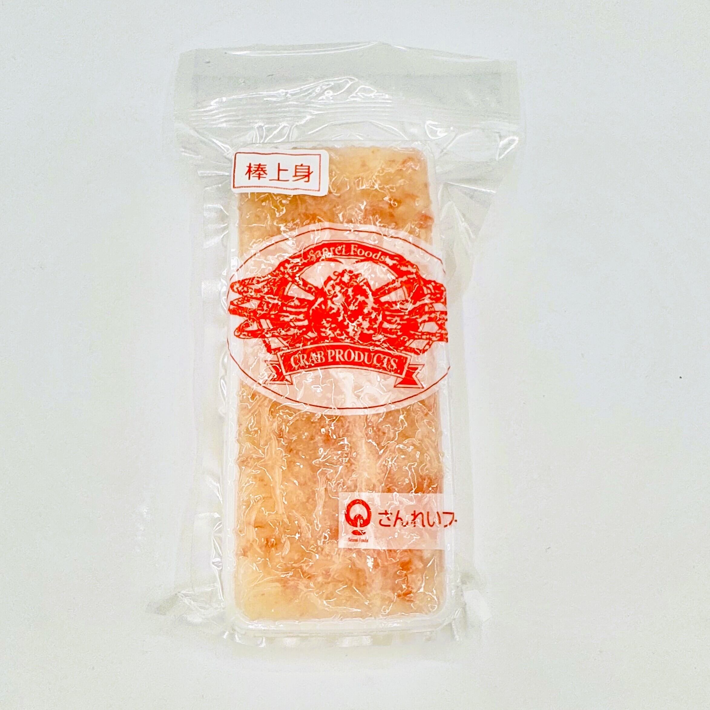 厳選された棒肉(脚肉)100%:カニの部位の中でも特に人気が高い脚の身だけを贅沢に使用。見た目の美しさと満足感のあるボリュームが自慢です。