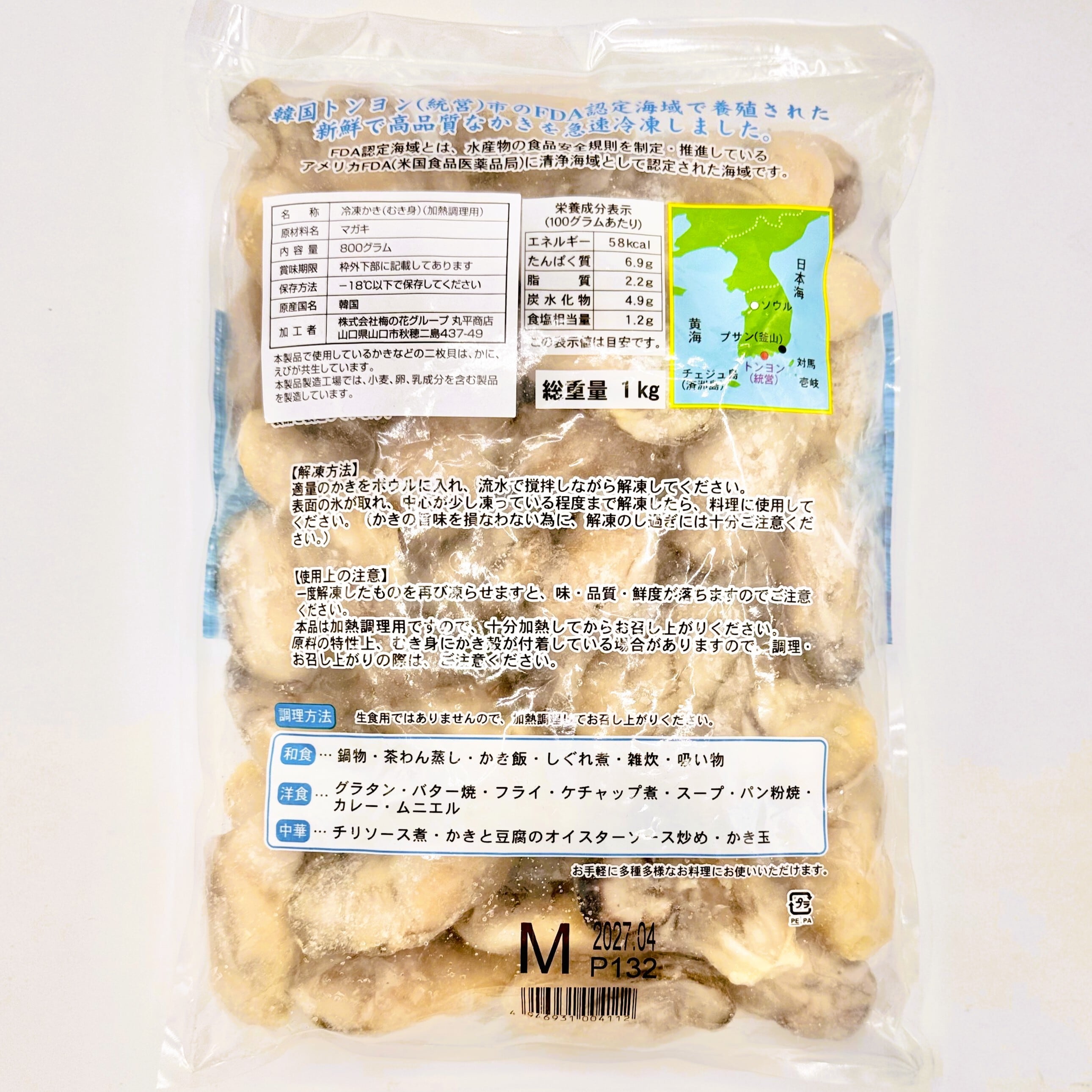 ・韓国トンヨン産マガキを使用した、旨み濃厚な冷凍むき身かき