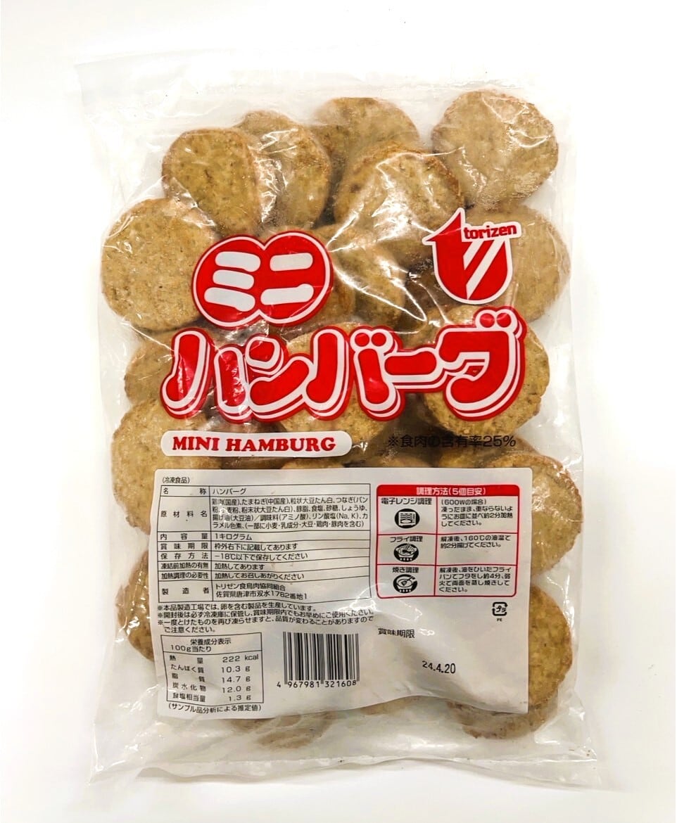 直径約5cm・厚さ1.5cmと手軽なサイズながら、ひと口かじれば肉汁と香ばしい風味が広がり、お子様から大人まで大満足の味わいです。