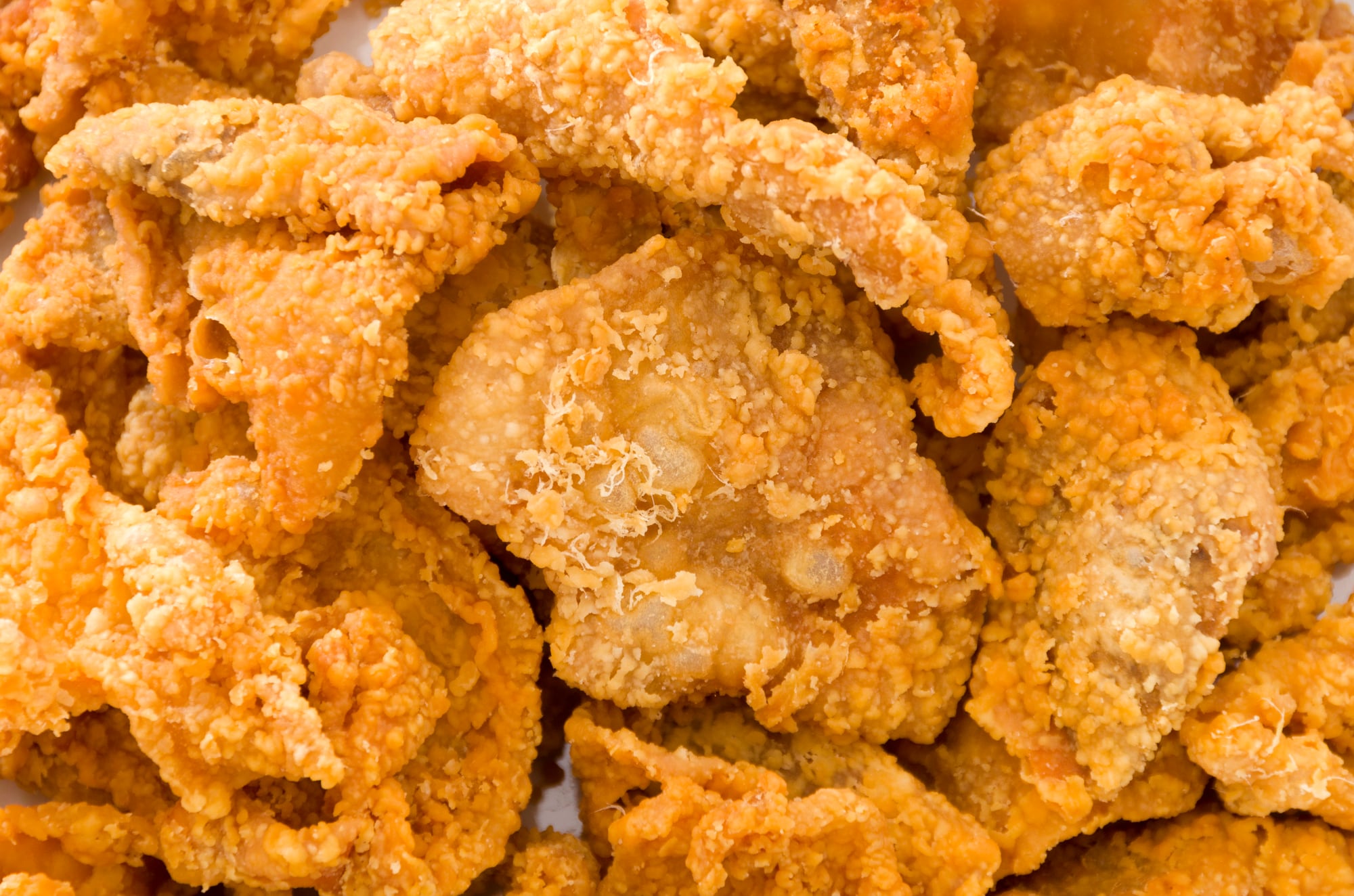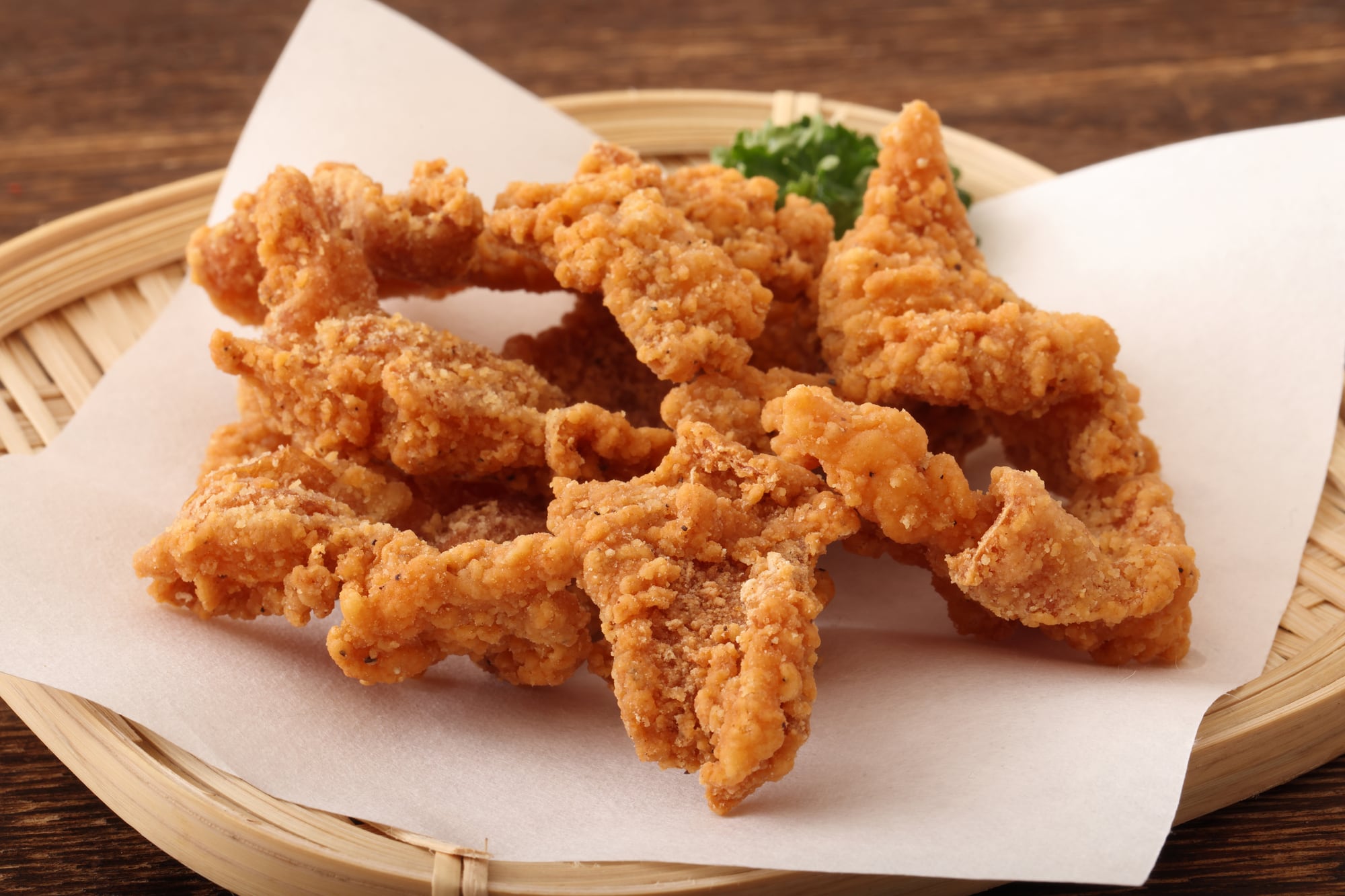 ・若鶏の鶏皮だけを使用した、旨みたっぷりのやみつき唐揚げ