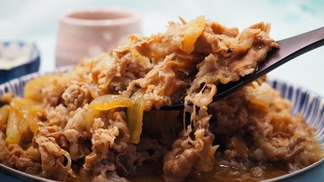 ・【牛丼】玉ねぎと甘辛く煮るだけで、お店の味に!