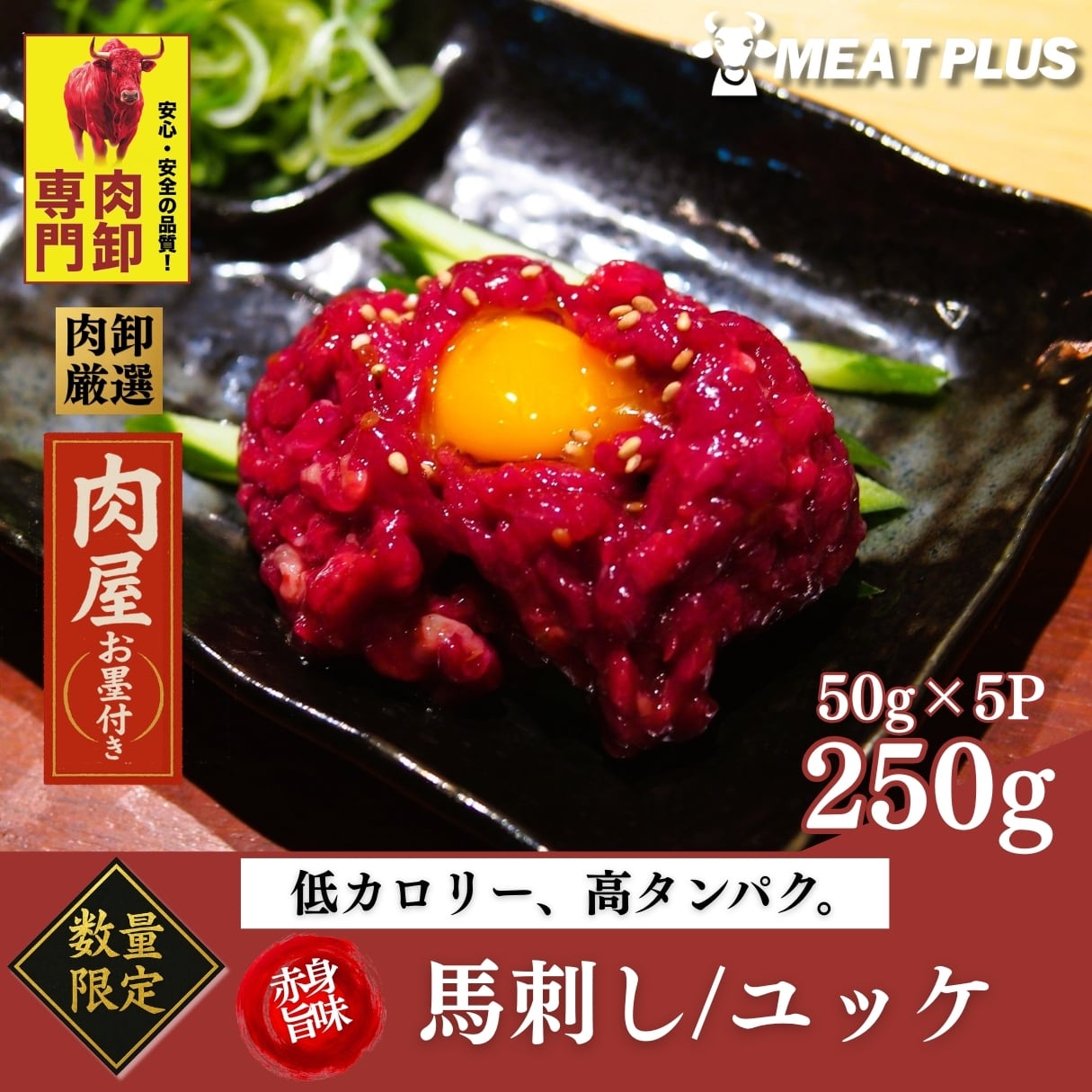 ・モンゴル産馬肉を使用した、ユッケ用馬刺し(生食向け) クセが少なく、濃厚なのに後味さっぱりとした赤身の旨み