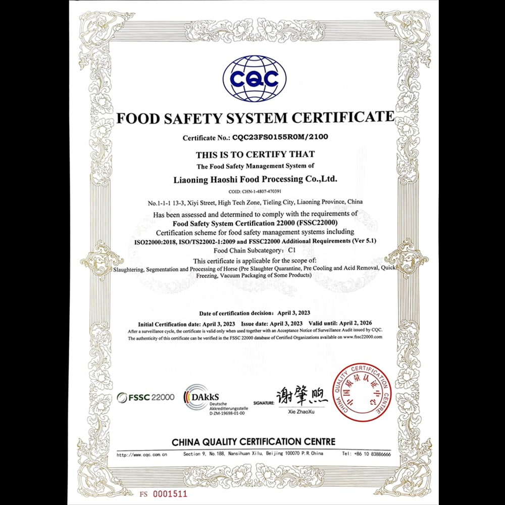 原材料名:馬肉(赤身/モンゴル産)